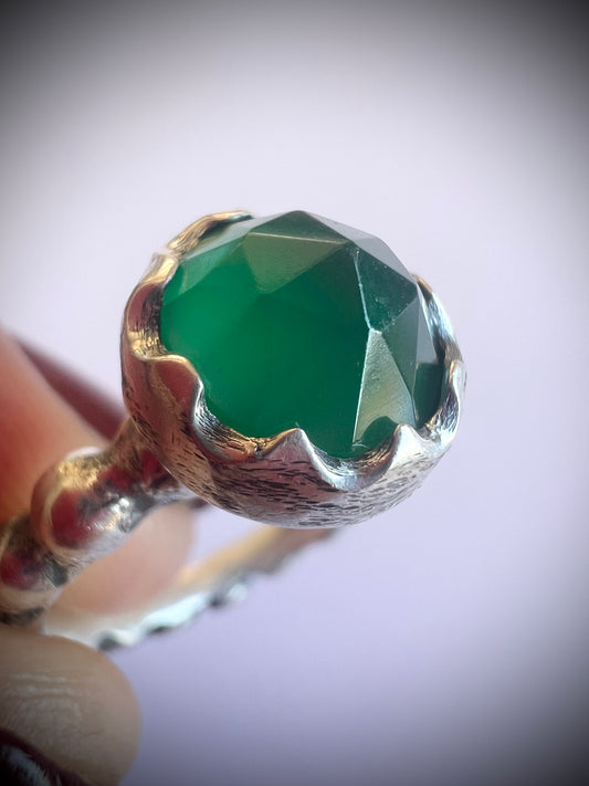 Anillo Pelotitas zigzag- Onix verde - Talla 13.5